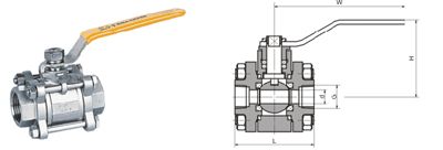 注:三片式系列球閥均可帶國際標準ISO支架和鎖定裝置。
