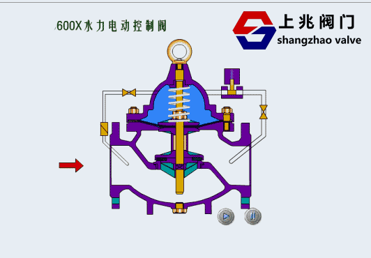 600X水力電動控制閥由主閥、電磁導(dǎo)閥、針閥、球閥、微形過濾器和壓力表組成水力控制接管系統(tǒng)。通過電磁導(dǎo)閥可以實(shí)現(xiàn)對閥門開啟和關(guān)閉的遙控。加裝附加裝置后,可控制開啟和關(guān)閉的速度。本產(chǎn)品利用導(dǎo)閥控制閥門的開啟和關(guān)閉,節(jié)省能源。可代替其它閥門大型電動裝置。 二、600X水力電動控制閥--工作原理